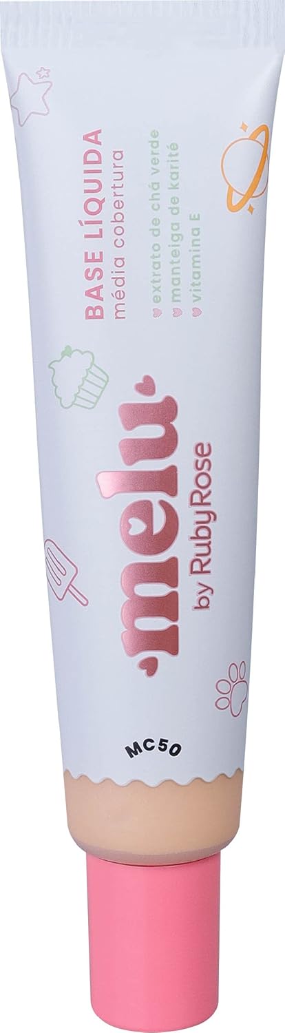 A Base Líquida Melu by RUBYROSE possui uma cobertura média e acabamento semi matte, dá para corrigir as imperfeições e ainda assim ter uma pele bem incrível.