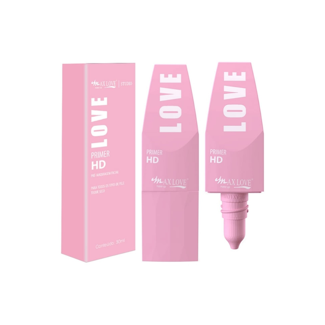 Primer HD Max Love: textura cremosa que uniformiza a pele e prolonga a maquiagem. Toque seco e acabamento perfeito!