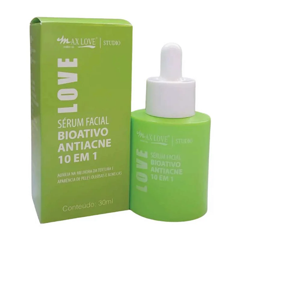 O Sérum Facial Bioativo Antiacne 10 em 1 Max Love foi especialmente desenvolvido para auxiliar na melhora da textura e aparência de peles oleosas e acneicas.