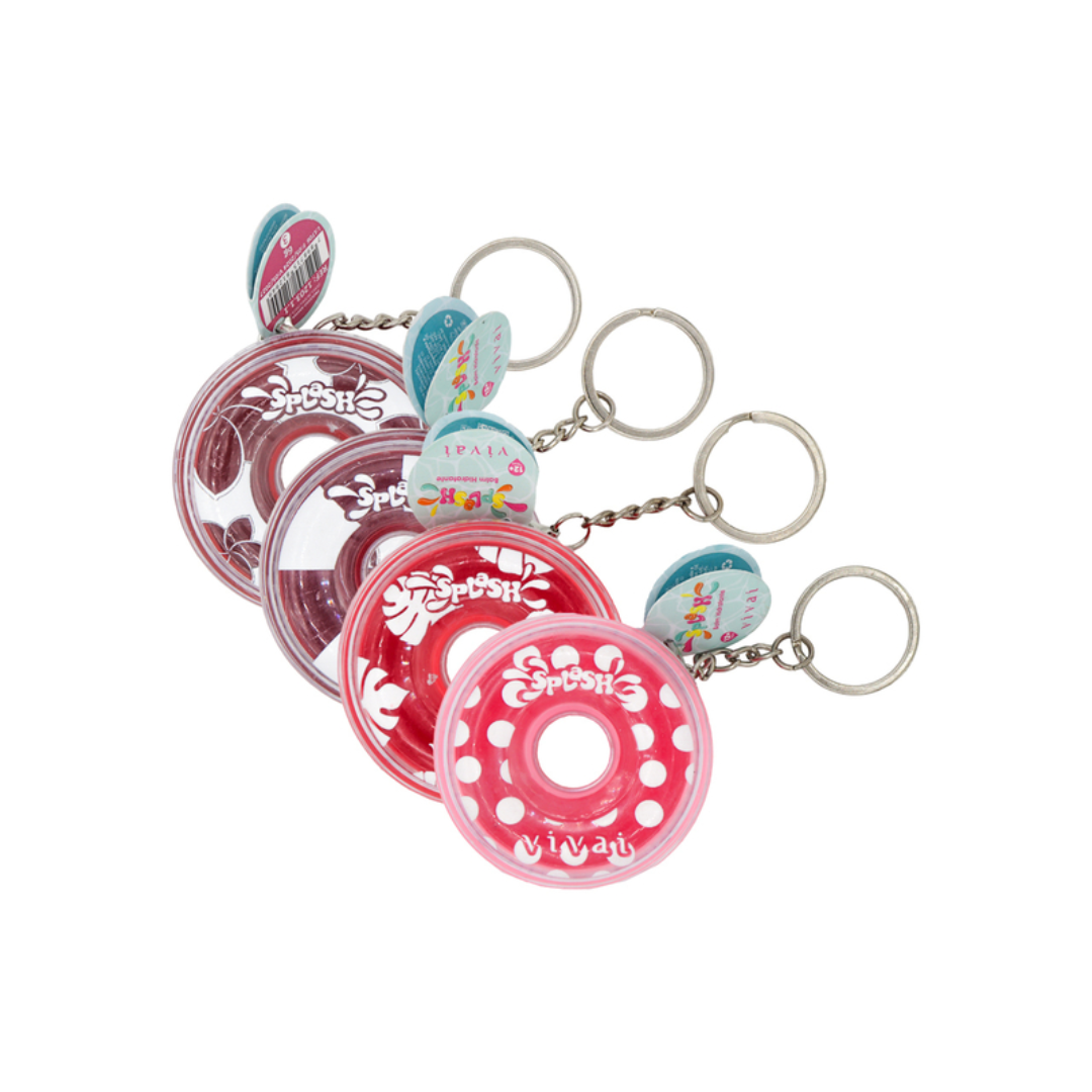 Balm Labial Splash: Hidrata os lábios com leve cor e aroma delicioso. Formato divertido que vira chaveiro prático e fofo.