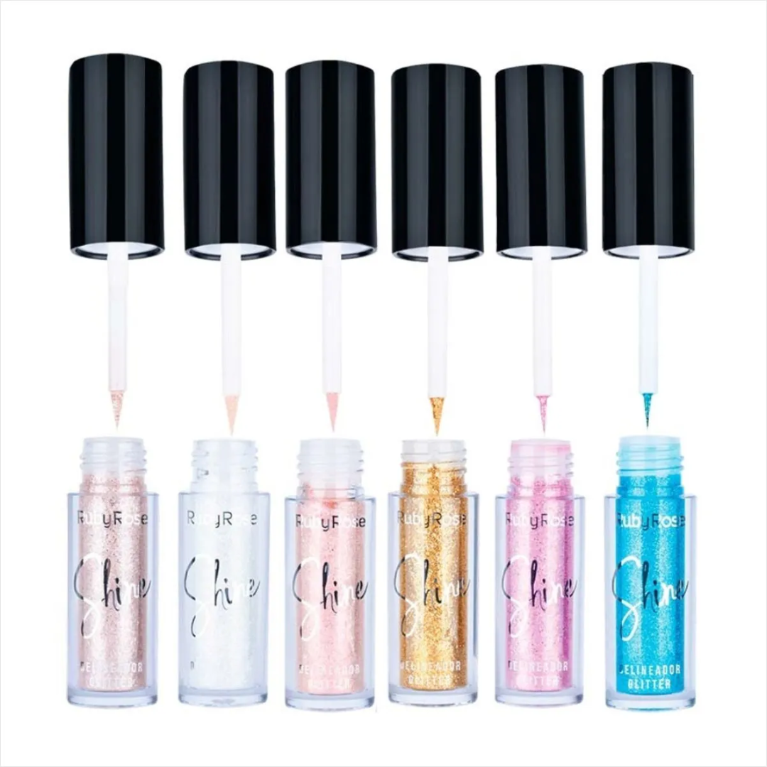 Delineador Glitter com cores de brilho intenso! Pincel fino para traços precisos. Secagem rápida e fixação prolongada.