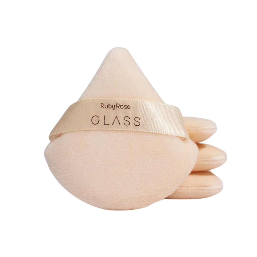 Esponja Pó Powder Puff Glass Ruby Rose: Aplicação suave e uniforme de pó facial com textura macia e acabamento sofisticado.