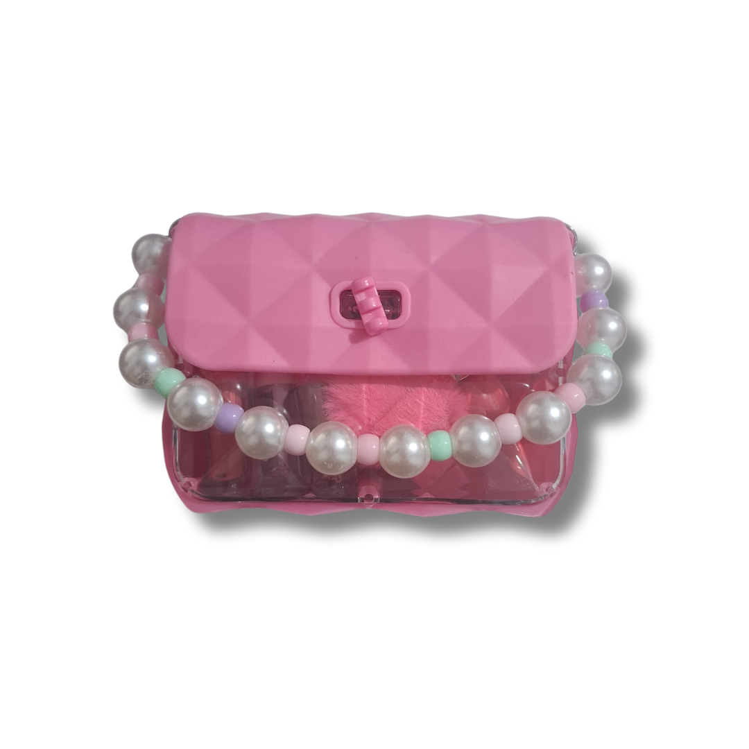 Bolsinha charmosa com gloss, blush, iluminador e mais! Perfeito para quem ama fofura e maquiagem.