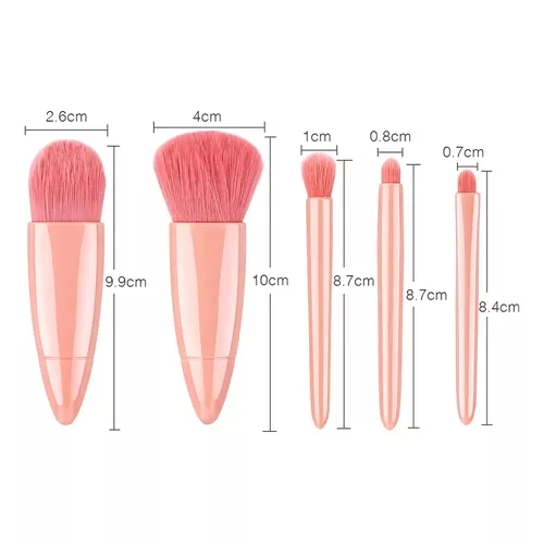 O Estojo com 5 Mini Pincéis com espelho é compacto e versátil, oferecendo pincéis de tamanhos reduzidos para aplicação detalhada de maquiagem. Perfeito para retoques e viagens, cada pincel é projetado para proporcionar precisão e acabamento profissional.